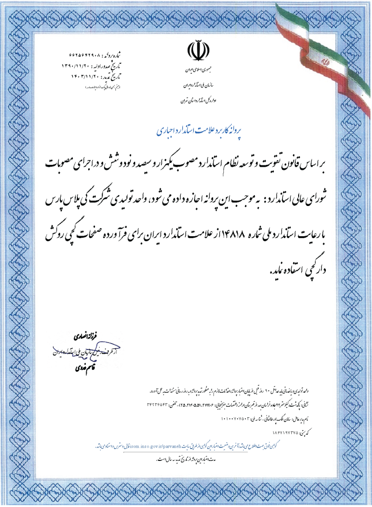 پروانه کاربرد علامت استاندارد اجباری محصولات روکش دار گچی