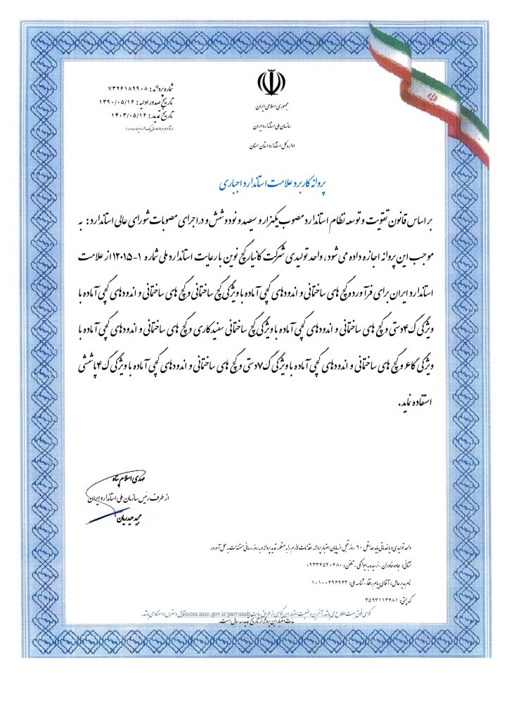 پروانه علامت کاربردی استاندارد بلوک گچی