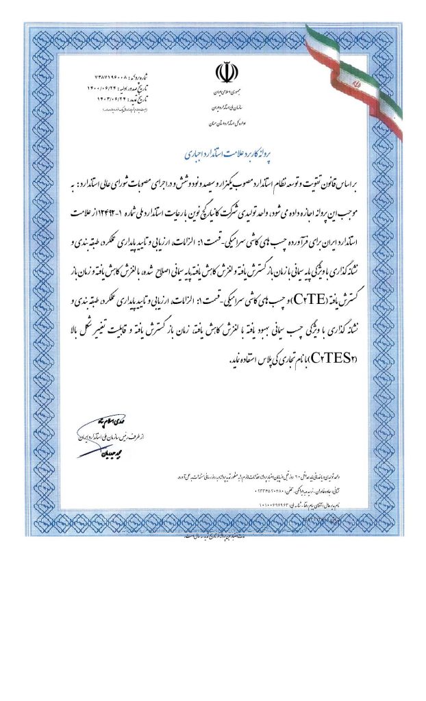پروانه کاربرد علامت استاندارد چسب کاشی